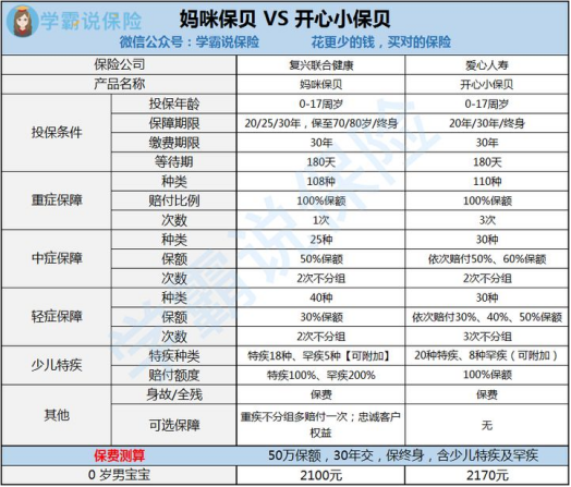话不多说,我们来看看妈咪保贝和开心小保贝两款产品基本的产品对比保障图: