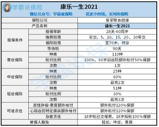 一、推荐复星联合康乐一生2021重疾险的三大原因!老规矩,大家先看保障图: