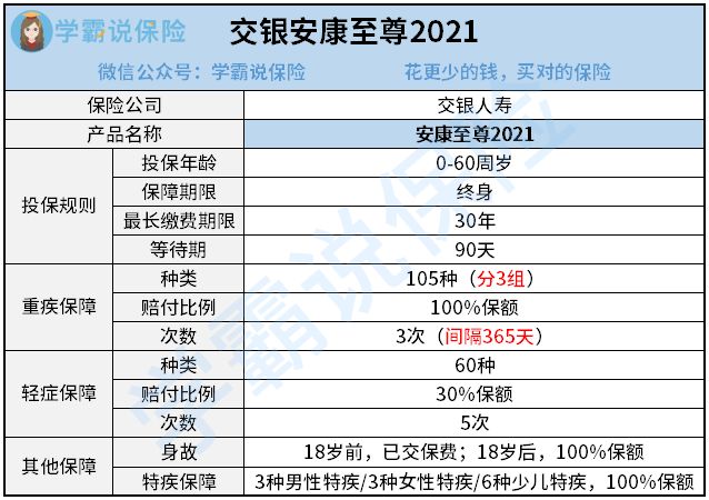 下面学姐就来好好分析一下交银安康至尊2021重疾险都有哪些亮点和不足:
