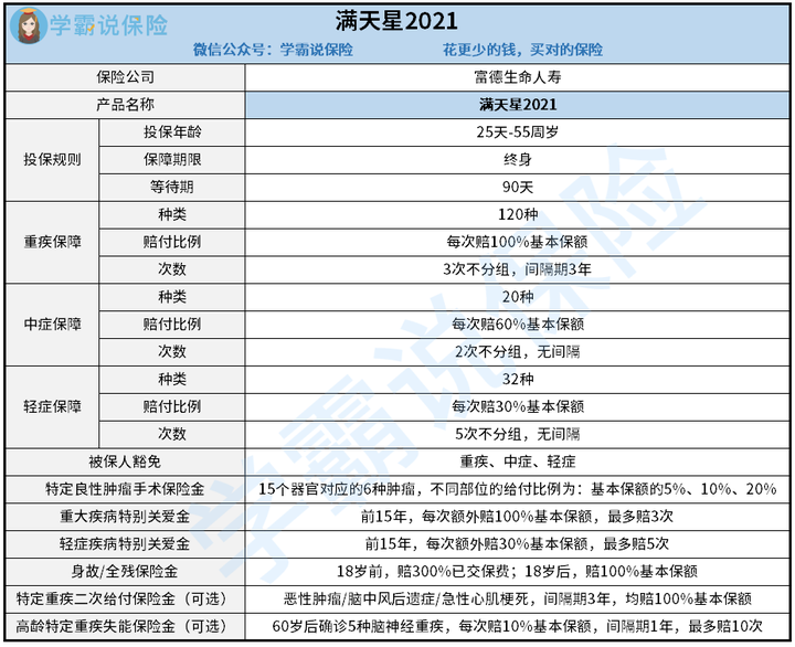 富德生命人寿旗下的重疾险还挺多的,学姐就以最近刚上线的这款满天星2021重疾险为例,让我们来看看它家的重疾险值不值得买?