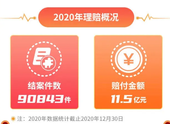 根据百年人寿2020年的理赔报告可知,2020年该公司的理赔结案件数为90843件,总共赔付金额为11.5亿元,可见下图:
