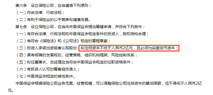 可以看到的是,要想成立一家保险公司,至少需要实缴2亿元人民币,且对公司的董事长、总经理等管理团队也有严格要求。