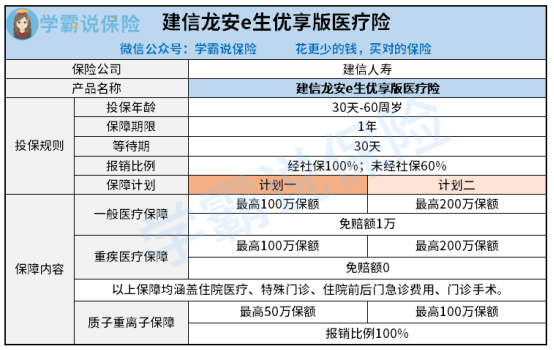 一、建信龙安e生优享版医疗险保障内容大公开!老规矩,先来看看产品保障图: