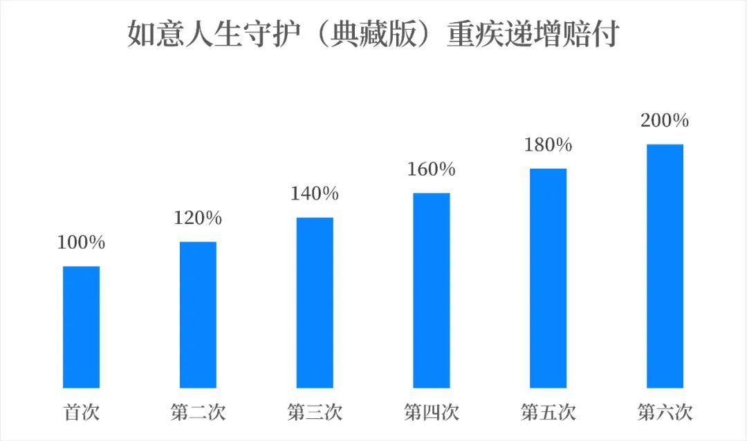 最新上线的如意人生守护·典藏版,是如意人生守护·英雄版的升级款,最大的特点是轻/中症首次赔付高达50%/65%基本保额。