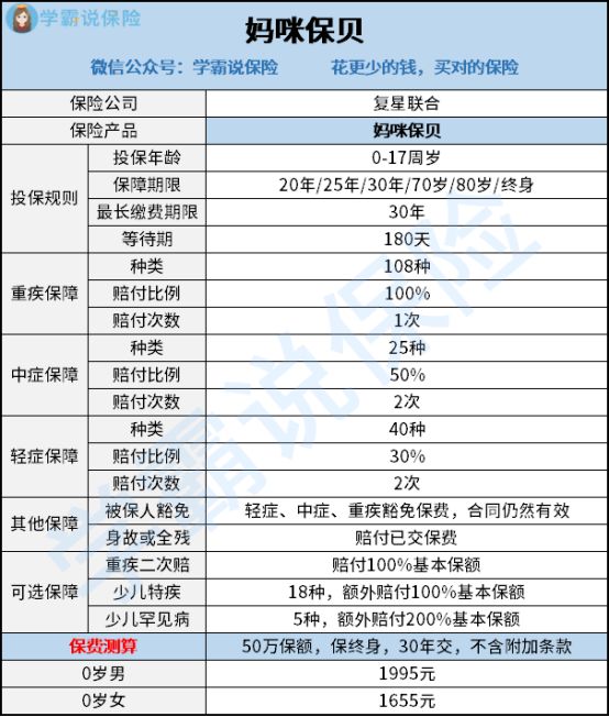 想知道复星联合妈咪保贝少儿重疾险的基本保障和其他热门产品相比的情况?学姐早有准备: