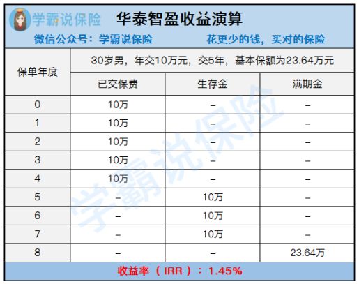 从上表演算结果得知,华泰智盈的真实收益率只有1.45%,低出天际。